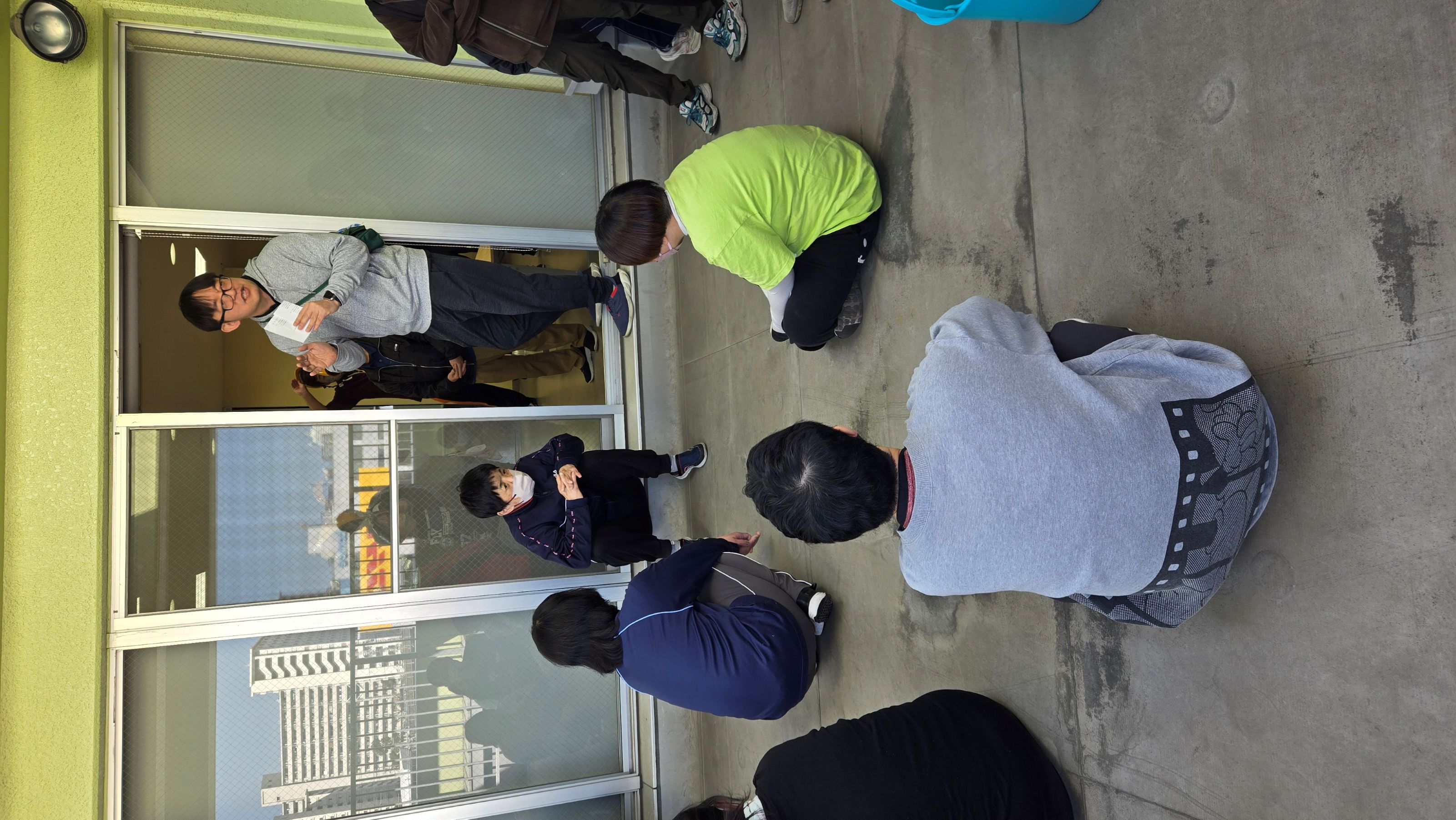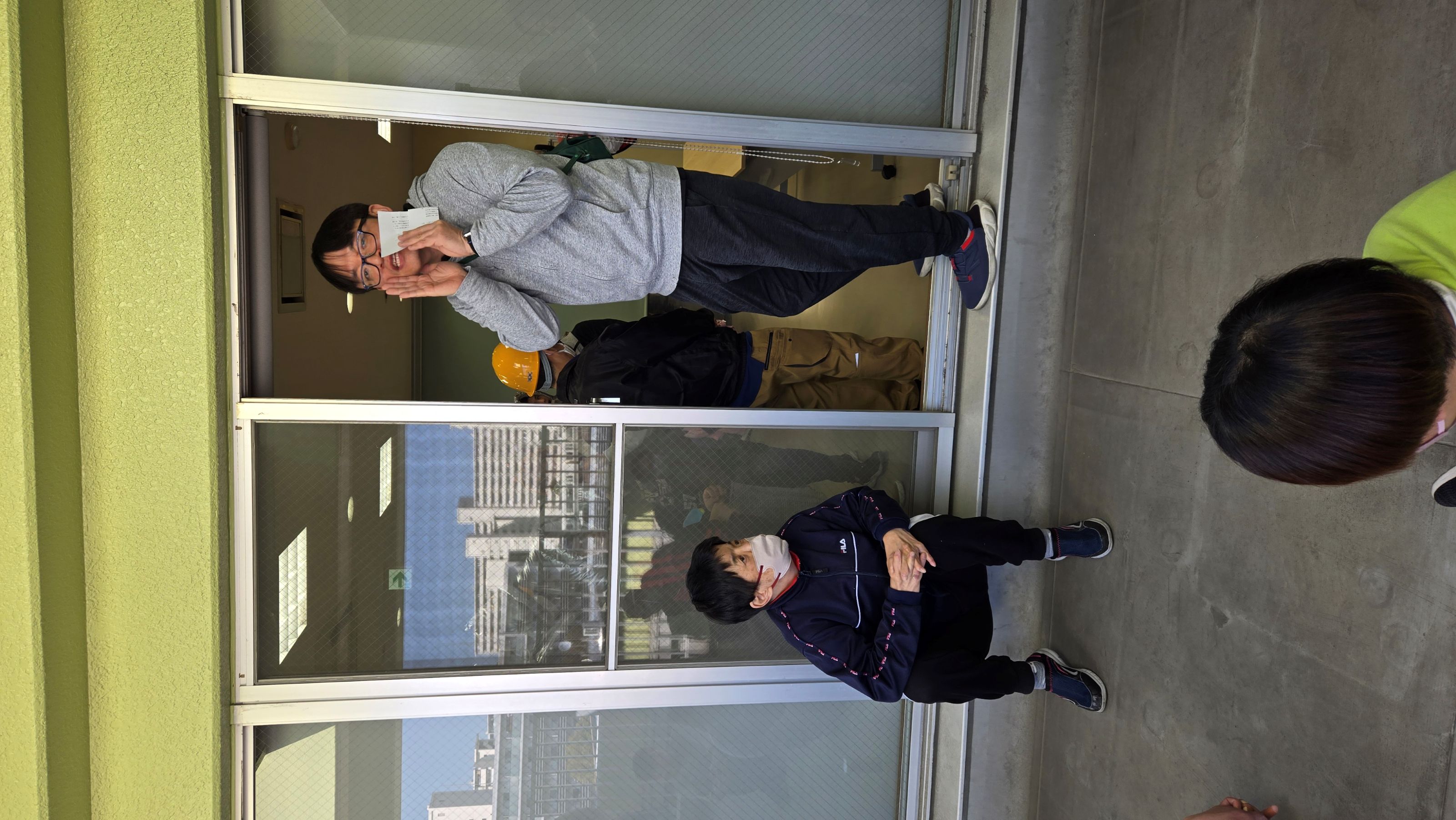 津波想定の避難訓練、階段で5階まで頑張って避難できました!