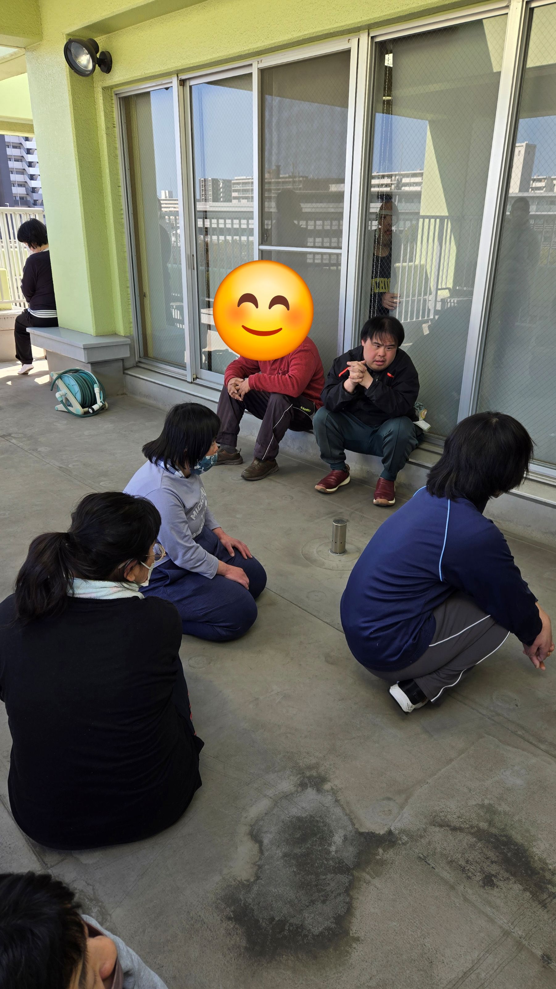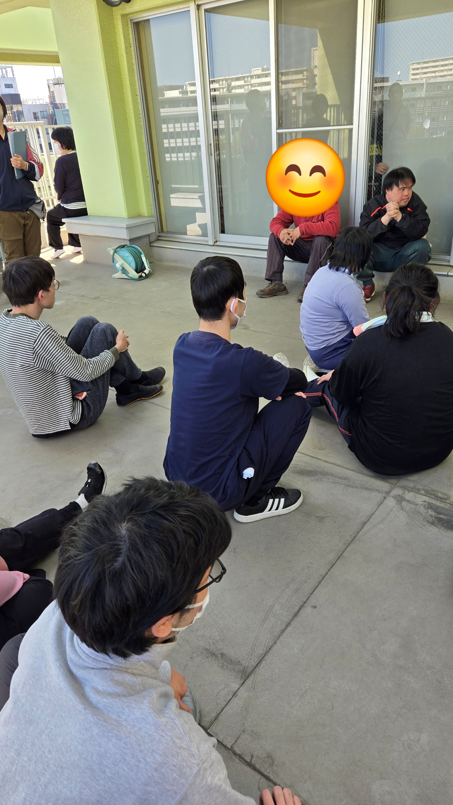 5階まで避難したあとは園長のお話をしっかりと聞きました。