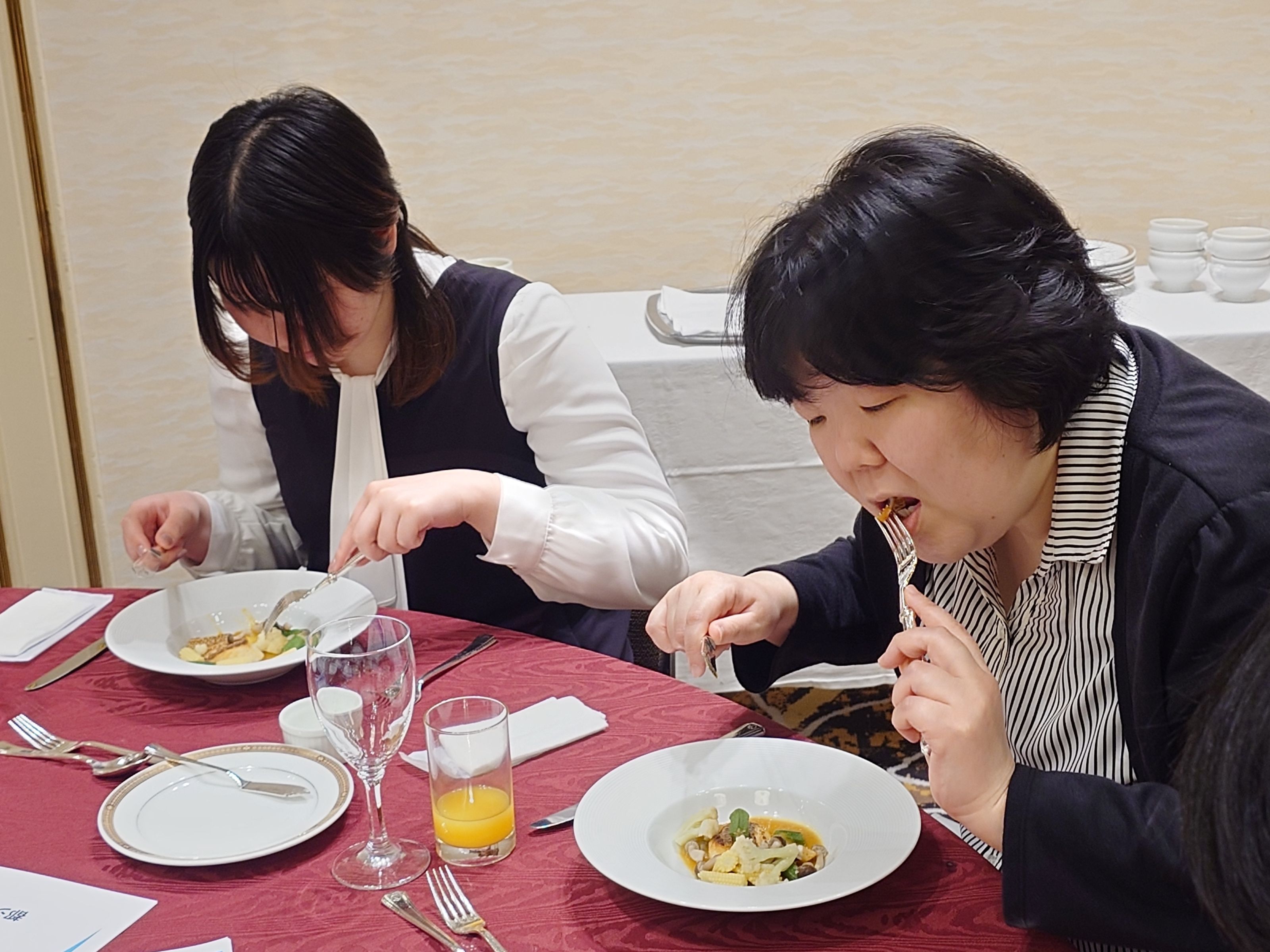 どの料理ではどのナイフとフォークを使うのかなどみんなしっかりと説明を聞きながら美味しい料理を食べました。
