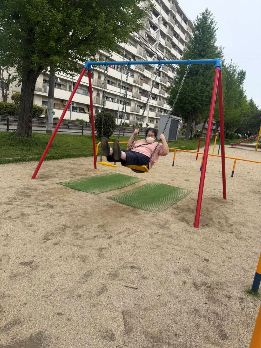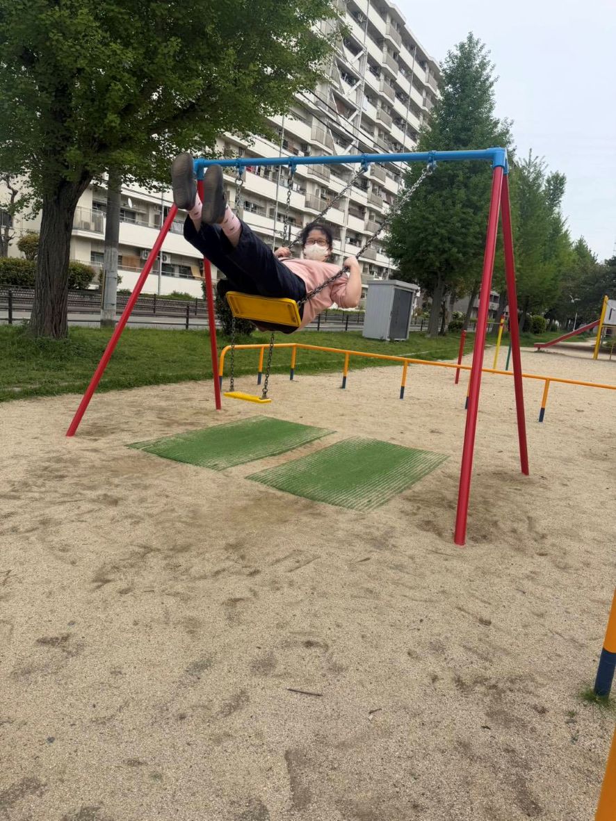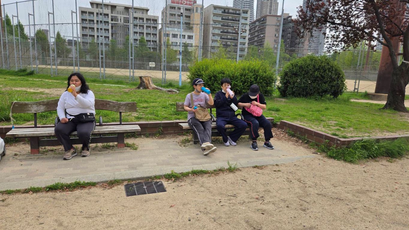 休憩は波除公園でしましたが、木陰でホッと一息つくメンバー、ベンチでゆっくりとお茶を飲むメンバー、ブランコを楽しむメンバー、過ごし方は色々です♪