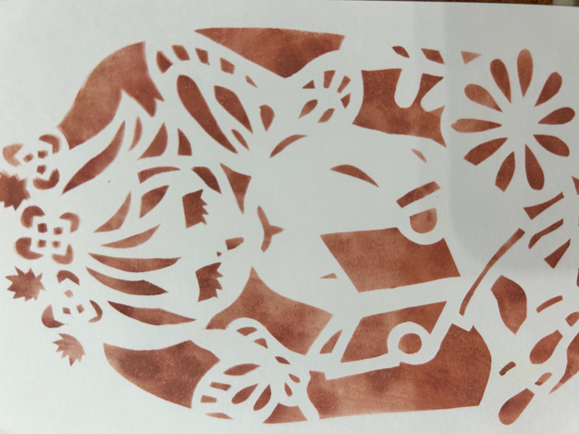 お雛様の飾りとステンシルの作品のおかげで玄関先が華やいでいます