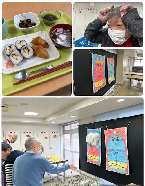 今年もやってまいりました節分の日!!福島育成園(通所部)恒例の豆まきをしました!(^^)!冬から春への季節の変わり目の行事のはずですが、なんとも寒いこと(';')かなり前から鬼の準備と豆の準備(?)を入念におこない、食後の運動も兼ねて開催となりました。昼食に恒例の巻きずしとお稲荷さんを食べ皆さん元気MAX♪♪せっせと準備した大量の豆(鬼に優しい紙製)で邪気を払うっっ!!(写真で見たら岩を投げつけてるように見えましたが)見事鬼を追い払い、計算されたようにちょうど掃除の時間へ~片付けまでがイベントですよね。これで今年1年無病息災、みんなで元気に活動できますね。