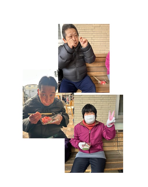 本日はマグロ解体ショーをする、ということで平成福島苑さまにお呼ばれし、職員・利用者19名で行ってきました~!(^^)!中央卸売市場から職人さんが来られ、持ってきていただいたマグロの方は、宮崎県日南の30㎏のキハダマグロ、お値段30万円とのこと!!拍手!!!!200人前くらいにはなるそうな。寒空の下おこなわれたマグロの解体ショーですが、寒いということは正にマグロが旬な証拠。新鮮なキハダマグロをお寿司にしてもらい、皆でいただきました。ネットリとした触感でとても美味しかったです。平成福島苑の皆様ありがとうございました。