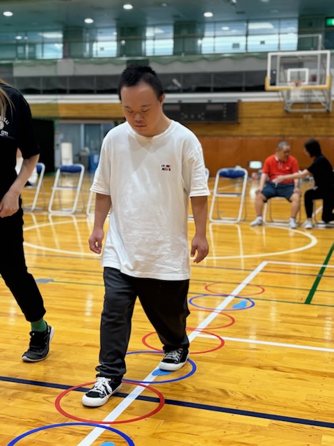 その後は赤、青の丸が床に並べられており、赤は右足、青は左足!!