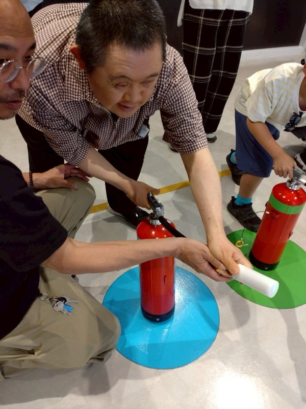 実際に消火器を噴射し初期消火の体験もしましたが、ほぼみなさん鎮火することができていました!!