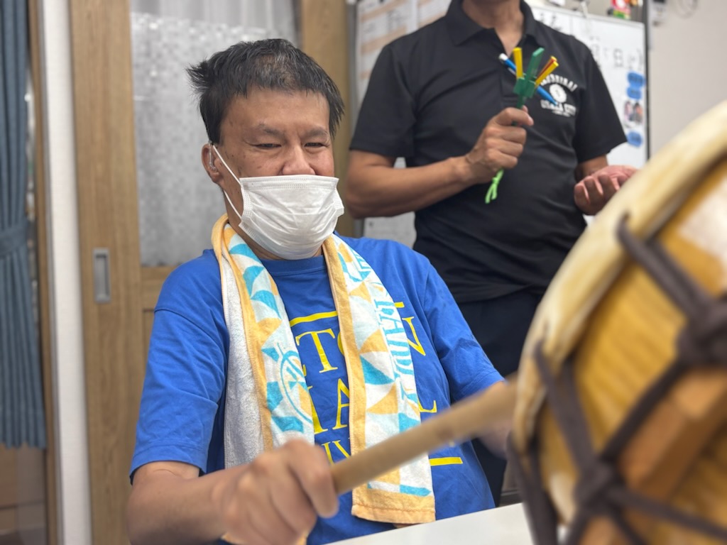 ブログBlog エンジョイ音楽 投稿日:2025年08月05日 祭~!!! 8月のエンジョイ音楽はお祭りムード全開でした♪鳴子を振ってカチャカチャと音を出してまるでよさこい♪気分も盛り上がり立ち上がって鳴らしている方もいてました!!その後は和太鼓を一人ずつ盆踊りの曲に合わせて叩いてお祭りモード☆みなさん上手に両手に持ったバチを順番に動かして音を鳴らすことができていました!! 前へ次へ 最近の投稿 大阪城ハイキングごくろうさん会グループ外出グループ外出カラオケ大会もうすぐ節分 アーカイブ 2026年 2026年04月 2026年03月 2026年02月 2026年01月 2025年 2025年12月 2025年11月 2025年10月 2025年09月 2025年08月 2025年07月 2025年06月 2025年05月 2025年04月 2025年03月 2025年02月 2025年01月 2024年 2024年12月 2024年11月 2024年10月 2024年09月 2024年08月 2024年07月 2024年06月 2024年05月 2024年04月 2024年03月 2024年02月 2024年01月 2023年 2023年12月 2023年11月 2023年10月 2023年09月 2023年08月 2023年07月 2023年06月 2023年05月 2023年04月 2023年03月 2023年02月 2023年01月 2022年 2022年12月 2022年11月 2022年10月 2022年09月 2022年08月 2022年07月 2022年06月 2022年05月 2022年04月 2022年03月 2022年02月 2022年01月 2021年 2021年12月 2021年11月 2021年10月 2021年09月 2021年08月 カレンダー 2026年4月 日 月 火 水 木 金 土 123456789101112131415161718192021222324252627282930 ←前月 次月→