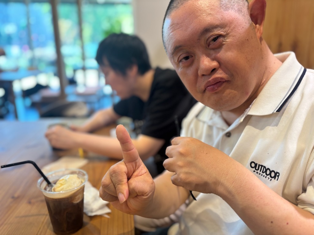 最後はカフェで休憩~!!炎天下の中の活動でしたが最後まで元気に歩かれていました!!