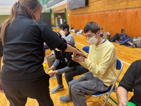 2か月ぶりの舞洲グループ教室に参加してきました。今回はいつも通り音楽に合わせて体操をした後はボッチャボールを使って体をタップしたり、