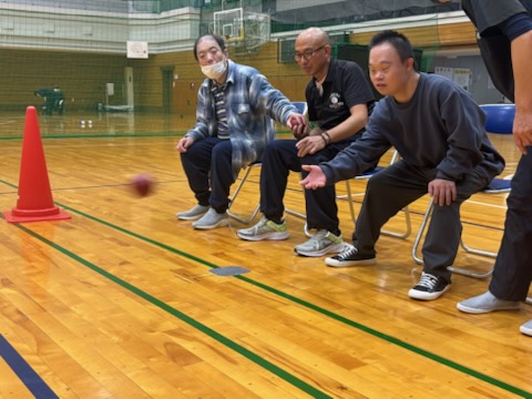 その後は4チームに分かれてスクエアボッチャの試合に挑戦しました。
