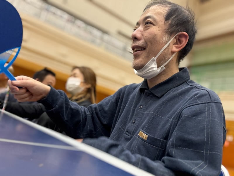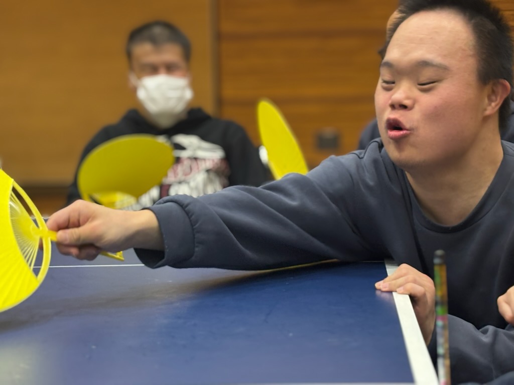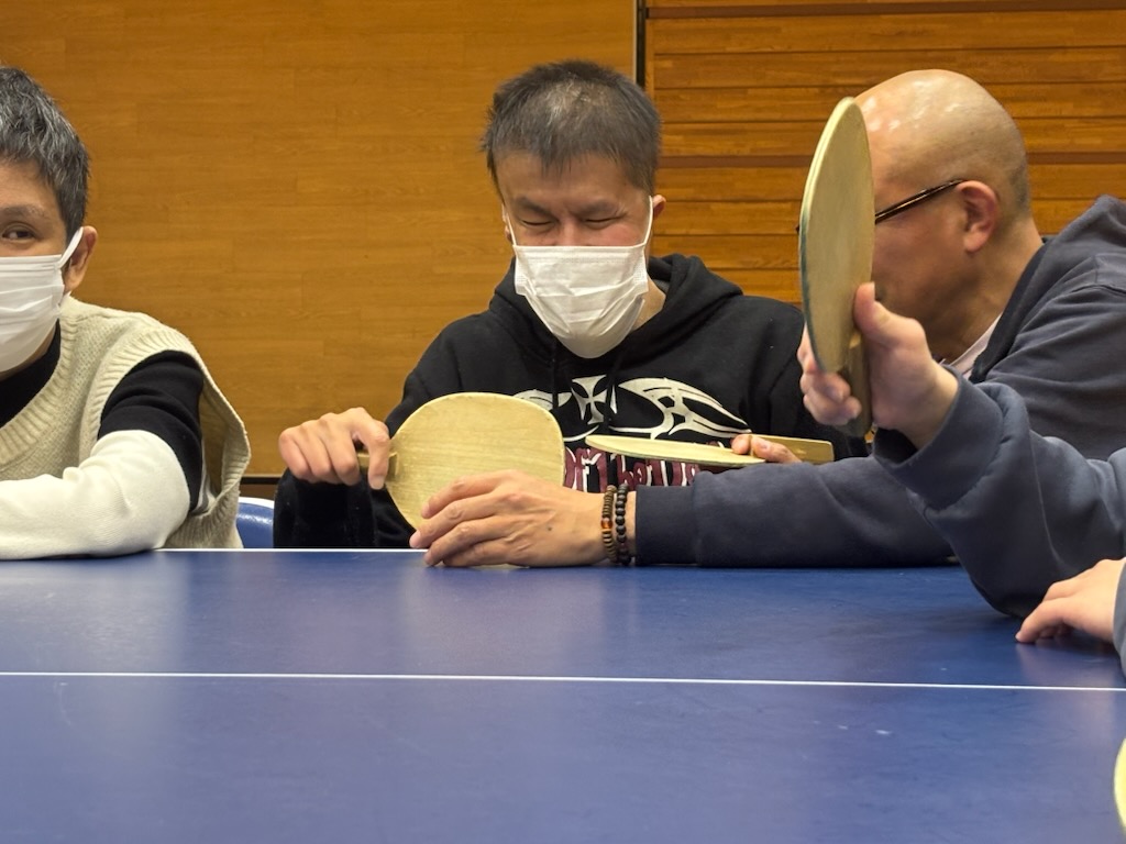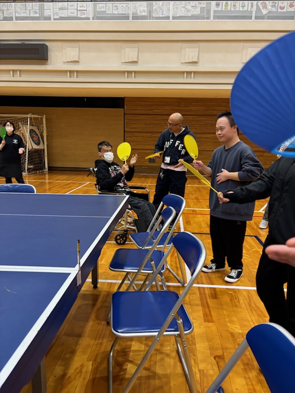 徐々に手首の使い方がわかってきたところでラケットに持ち替えここからが勝負!!4面卓球をしました。