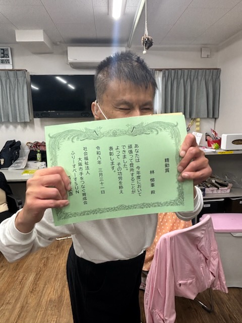 帰園してからは管理者から「精勤賞」をお渡しさせていただきました☆
