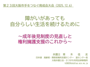 [限定]「障がいがあっても自分らしい生活を続けるために」の動画 Posted on 2026-01-20Updated on 2026-01-21by 事務局カテゴリー:会員向け学習会 このコンテンツを閲覧するにはログインが必要です。お願い Log In. あなたは会員ですか ? 会員について